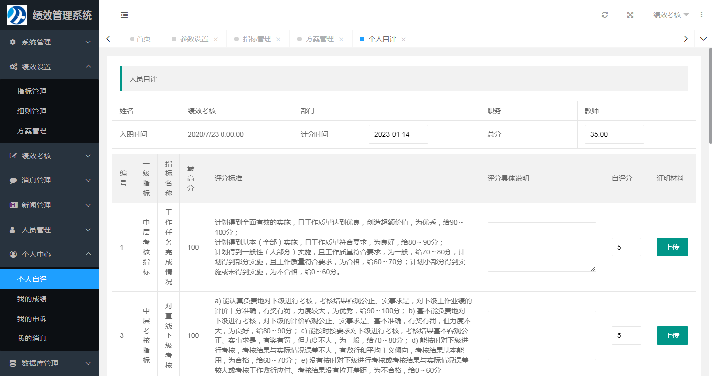 2、自評可以上傳文件材料佐證、也可以文字說明。