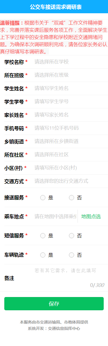 客戶定制的學生公交乘車調研系統,實現用戶前臺填寫公交乘車要求,后臺匯總統計,并在地圖上呈現每個乘車人員分布區(qū)域。