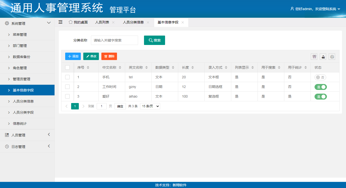 1、堪稱最靈活的人事信息管理系統(tǒng),可完全自定義人員基本信息和人員分類信息。